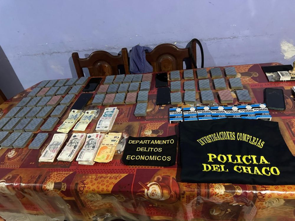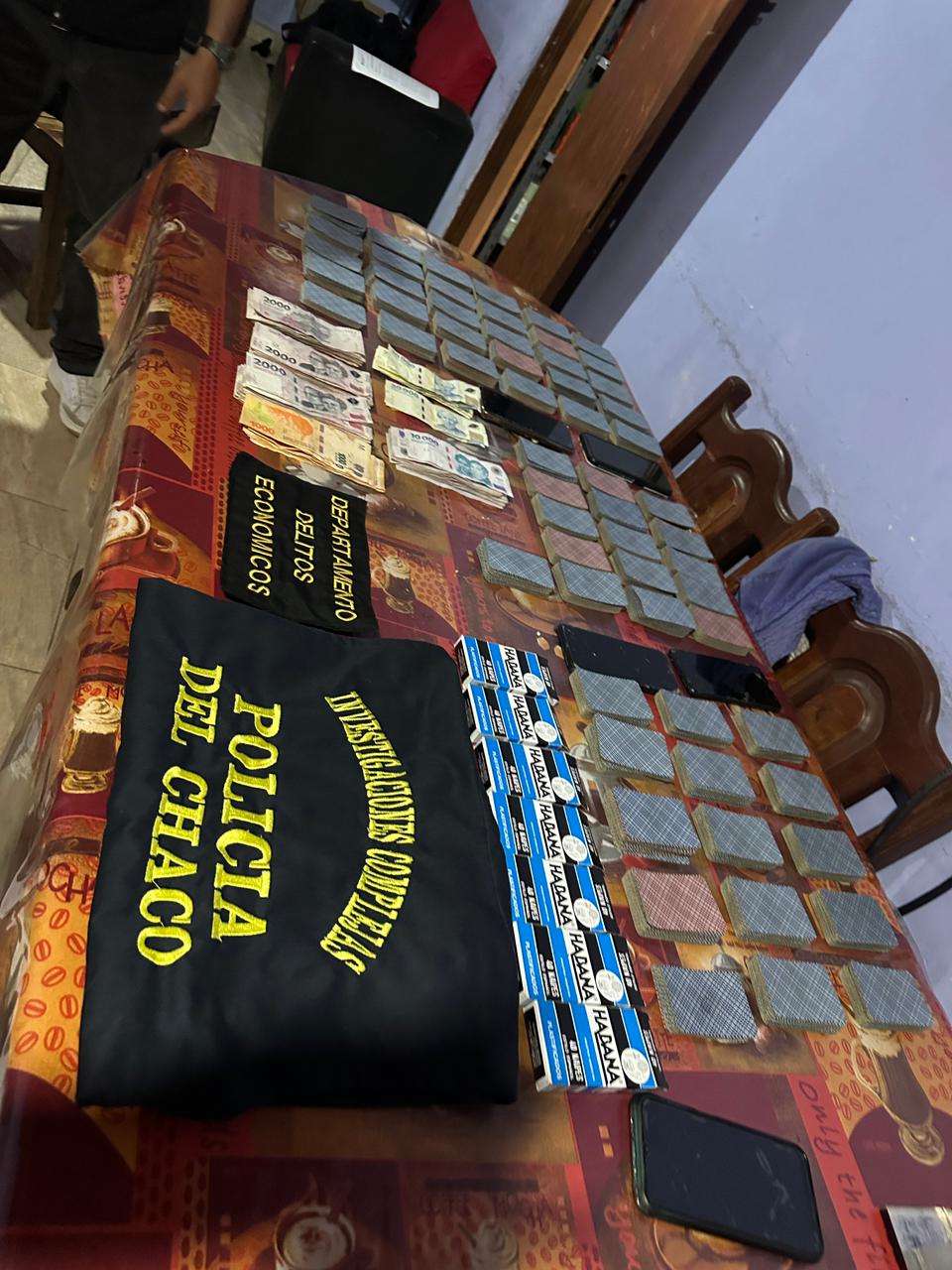 El procedimiento se desencadenó tras una denuncia anónima recibida por el Área de Lucha contra el Juego Ilegal de Lotería Chaqueña, la cual alertaba sobre partidas clandestinas del juego de mesa denominado "ferro". El operativo comenzó alrededor de las 5, en un domicilio ubicado sobre la calle Quebracho. Luego de tareas investigativas conjuntas con la División Investigaciones de Charata, se determinó que en dicha finca se realizaban actividades ilícitas durante los fines de semana en horario nocturno. Bajo la supervisión de la Dra. Elizabeth Palacio y conforme a la orden emitida por el Juzgado de Garantías de Presidencia Roque Sáenz Peña, se procedió al registro del inmueble. Como resultado de la requisa, el personal policial secuestró: • 2.358 naipes de truco (distribuidos en 59 mazos). • $574.000 en efectivo de distinta denominación. • 4 teléfonos celulares. • 7 cajas de juegos y fichas de apuestas. Al momento del ingreso de las fuerzas de seguridad —que contaron con el apoyo del Cuerpo de Operaciones Especiales (COE), el principal investigado no se encontraba en la vivienda. La causa ha sido caratulada como Supuesta Infracción al Artículo 301 Bis del Código Penal Argentino, que sanciona la explotación de juegos de azar sin la debida autorización. Las autoridades judiciales correspondientes al Equipo Fiscal N° 4 continúan con las diligencias de rigor para dar con los responsables.