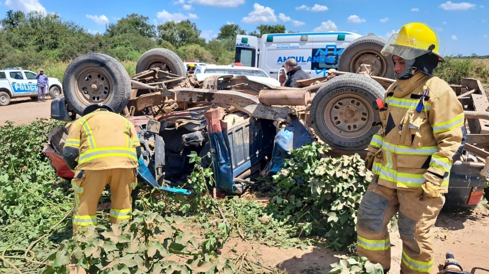 *Los vehículos involucrados* La colisión frontal tuvo como protagonistas a una Toyota Hilux blanca, perteneciente a una firma de servicios agrarios y conducida por un joven de 23 años oriundo de Coronel Du Graty (quien resultó con lesiones leves), y una Ford F-100 verde en la que circulaban cuatro personas. *Rescate y asistencia* La peor parte se la llevaron los ocupantes del segundo rodado. Tres de ellos fueron trasladados de urgencia al hospital local apenas arribó la asistencia médica. Sin embargo, el conductor de la Ford F-100 quedó atrapado entre los hierros retorcidos de la cabina. Ante la gravedad de la situación, trabajaron de forma conjunta efectivos de la División Bomberos Interior Charata y el Cuerpo de Bomberos Voluntarios, quienes mediante maniobras de corte y expansión lograron liberar al hombre para su inmediato traslado. *Estado de salud y derivados* Tras el ingreso al nosocomio, se emitieron los primeros partes médicos: • Un hombre de 36 años, vecino de Las Breñas, sufrió "traumatismo cerrado de tórax y de cráneo", por lo que fue derivado de complejidad al Hospital 4 de Junio de Sáenz Peña. • Otro de los ocupantes, un hombre de 60 años también de Las Breñas, presenta "politraumatismos con traumatismo encéfalo craneano (TEC) moderado", siendo derivado a una clínica privada. *Peritajes* En el lugar del hecho se hicieron presentes el Ayudante Fiscal y peritos del Poder Judicial, quienes realizaron las tareas de planimetría y recolección de pruebas para determinar las responsabilidades del siniestro. Personal de la Comisaría Primera de Charata custodió la zona durante el operativo.