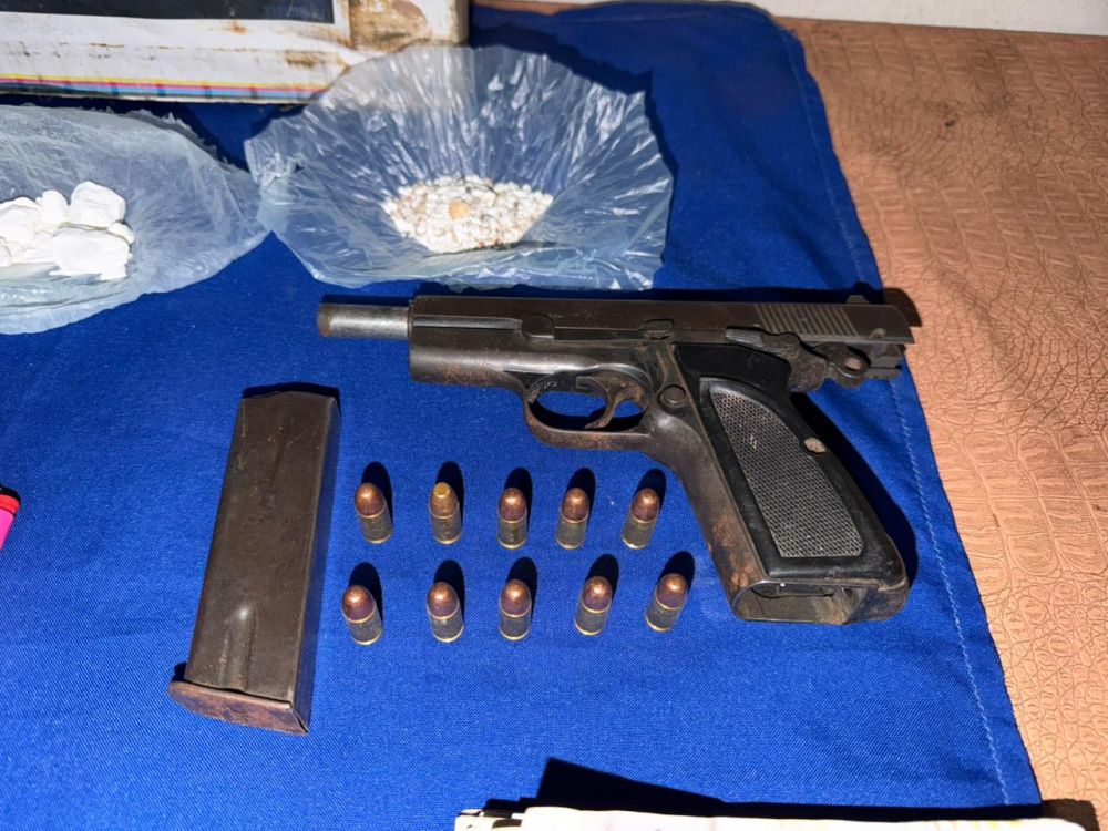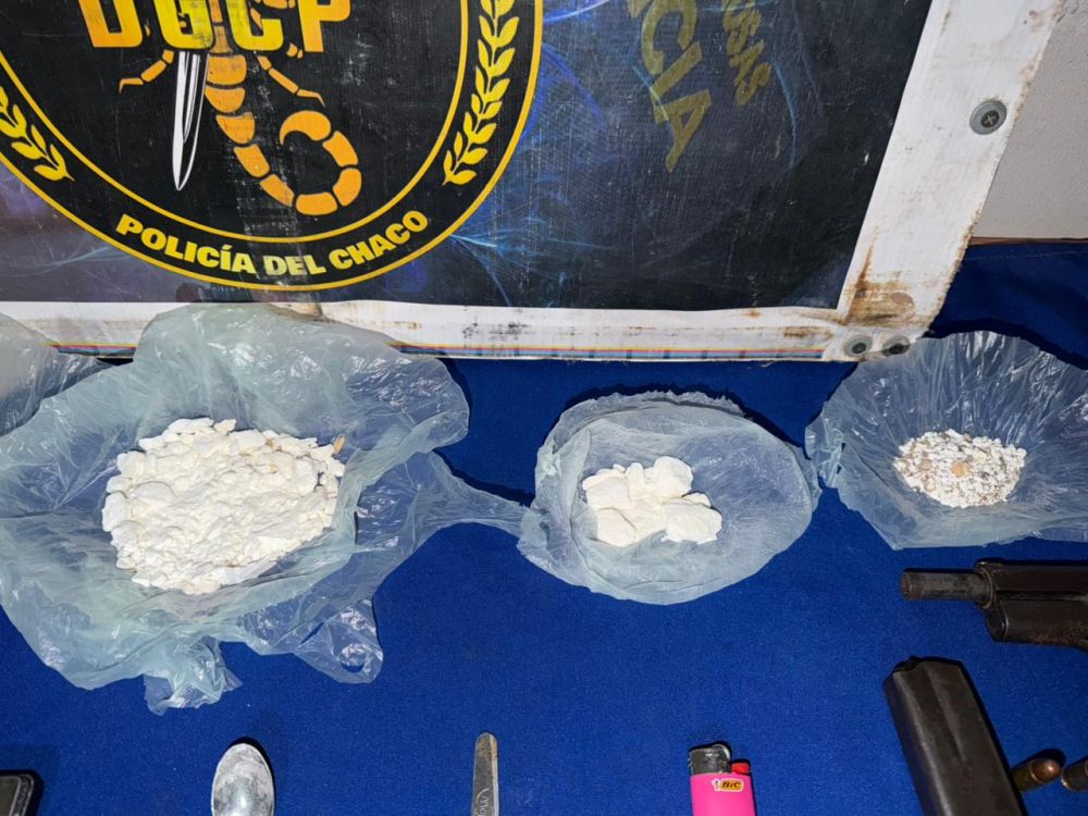 Además, dos hombres fueron aprehendidos. El procedimiento se concretó en la madrugada de este sábado, en la Chacra 27 de Juan José Castelli, en el marco de la causa por “Supuesta Infracción a la Ley de Estupefacientes”. La medida fue ordenada por el Juzgado de Garantías de Juan José Castelli, a cargo del doctor José Luis Kerbel, con intervención de la Fiscalía Antidrogas de Presidencia Roque Sáenz Peña, encabezada por la doctora Laura Soledad Borelli. Los antinarcóticos incautaron en la finca, un envoltorio de polietileno tipo “bochón” con una sustancia blanquecina que, tras el pesaje y la prueba de campo, arrojó un resultado de 61,91 gramos de cocaína. Además, una sustancia blanquecina desparramada que, sometida a pesaje y reactivo químico, dio un resultado de 36,59 gramos positivos para cocaína. El total secuestrado asciende a 98,5 gramos de cocaína. Por otra parte, incautaron tres celulares, recortes de polietileno, $ 211.250 pesos en efectivo y varias anotaciones. También se encontró en una de las habitaciones una pistola calibre 9 milímetros, con cargador y diez cartuchos del mismo calibre. En el lugar fueron detenidos el principal investigado, un hombre de 31, y un joven de 22 años quienes se encontraban en la vivienda. Uno de ellos intentó darse a la fuga pero fue reducido. Ambos aprehendidos quedaron a disposición de la Justicia por Supuesta Infracción a la Ley de Estupefacientes