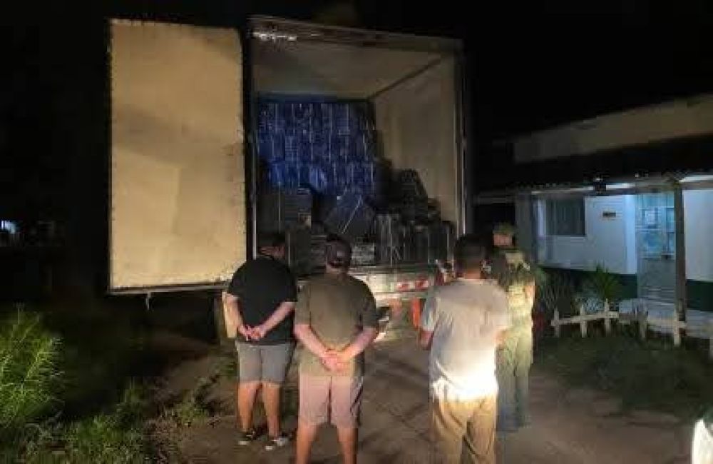 Un operativo de control realizado sobre la Ruta Nacional 11, a la altura del kilómetro 1.060 en la localidad chaqueña de Lapachito, permitió detectar un cargamento de cigarrillos de contrabando oculto en un camión de cargas generales, con patente paraguaya que se dirigía hacia la provincia de Buenos Aires. El procedimiento fue llevado adelante por efectivos de los Escuadrones 14 "Las Palmas" y 51 "Fontana" de Gendarmería Nacional, quienes realizaban controles dinámicos y sorpresivos en el marco de tareas preventivas ante posibles traslados de mercadería ilegal en vehículos de gran porte. La intervención se produjo a partir de información suministrada por la Unidad de Inteligencia Criminal "Formosa", que alertó sobre eventuales movimientos de mercadería ilícita. En ese contexto, los uniformados detuvieron la marcha de un transporte proveniente de Puerto Seco Boreal, en Paraguay, cuyo destino final era territorio bonaerense. Durante la inspección inicial, los gendarmes detectaron irregularidades en el semirremolque térmico del camión. La puerta trasera se encontraba levemente entreabierta y la traba de seguridad había sido vulnerada, pese a que el vehículo contaba con precintos aduaneros colocados, lo que reforzó las sospechas de los agentes. Ante esta situación, se dio intervención a la Unidad Fiscal de Resistencia y al Juzgado de Garantías N�1, que ordenaron el traslado del vehículo al asiento del Escuadrón 14 para profundizar el control. Allí, en presencia de testigos, se constató la existencia de 150.000 atados de cigarrillos —equivalentes a 15.000 cartones— de origen extranjero y sin documentación aduanera. El cargamento, valuado en 498.000.000 de pesos, fue secuestrado por infracción a la Ley 22.415 del Código Aduanero. Por disposición del magistrado interviniente, también se ordenó la detención del conductor del camión, de nacionalidad paraguaya, y el secuestro del vehículo con su semirremolque. Fuente Diario Chaco.