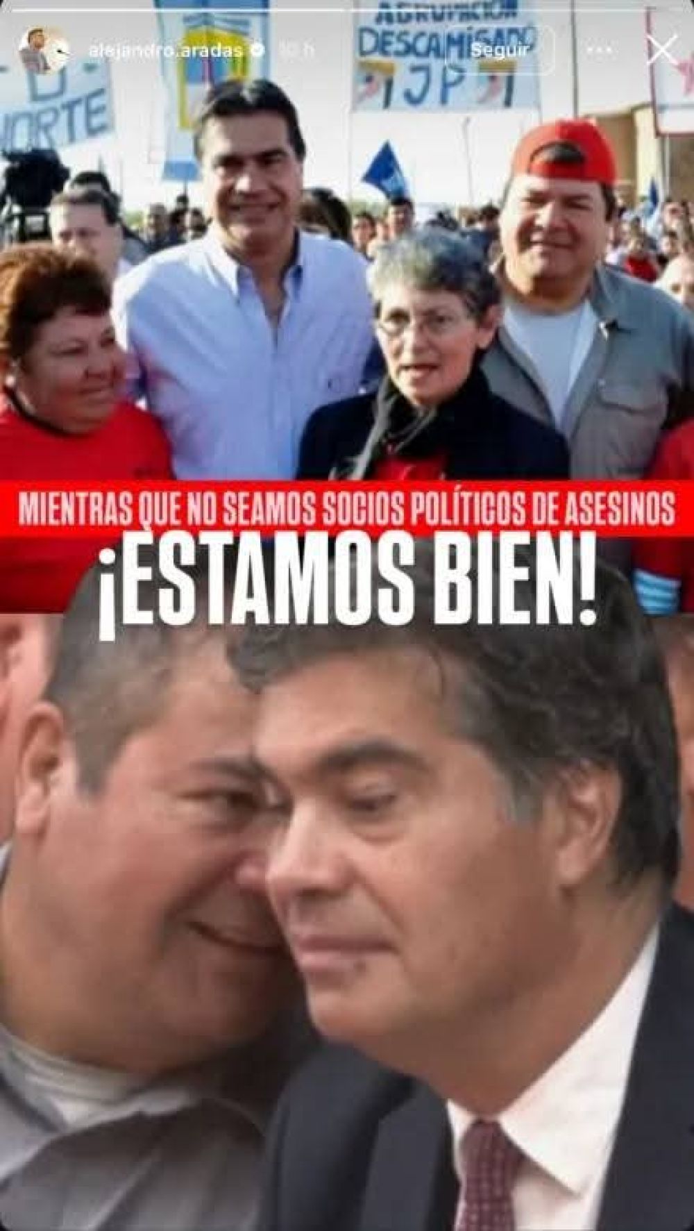 El presidente del Concejo Municipal de Resistencia realizó una publicación contra Capitanich en su cuente de Instagram. Aradas compartió en su cuenta oficial de Instagram la frase: "Mientras que no seamos socios políticos de asesinos, estamos bien", acompañada de imágenes en las que se observa a Capitanich junto a Emerenciano Sena, dirigente social actualmente detenido por el femicidio de Cecilia Strzyzowski. Publicación de Alejandro Aradas La polémica comenzó luego de una publicación de Capitanich en la red social X, donde cuestionó el nuevo esquema de concesiones de rutas nacionales impulsado por el Gobierno nacional y reclamó una mayor defensa de la infraestructura del interior del país. "Me pregunto: ¿dónde están nuestros gobernadores para defender nuestros puertos fluviales, nuestras rutas y nuestros puentes? Eran tan gallitos en campañas electorales, pero tan pusilánimes ante Milei", escribió. Captura de pantalla del cruce entre Zdero y Capitanich En su mensaje, el exmandatario provincial sostuvo que el nuevo sistema de concesiones solo contempla el 20% de la red vial nacional, mientras que el 80% restante quedaría fuera del plan. En el caso del Chaco, explicó que, de los casi 1.000 kilómetros de rutas nacionales, solo 291 kilómetros estarían incluidos en el esquema, dejando más de 700 kilómetros sin mantenimiento garantizado. Además, cuestionó el sistema de peajes previsto en el nuevo modelo. Según señaló, se sumarían nuevas estaciones y los valores podrían alcanzar los $ 4.000, incorporando además nuevas categorías de vehículos, incluidas las motocicletas, y concesiones que podrían extenderse entre 20 y 30 años. Las declaraciones motivaron la respuesta del gobernador Zdero, quien volvió a criticar a la gestión provincial anterior y reclamó que se devuelvan recursos que, según afirmó, fueron desviados durante ese período. "Devuelvan la plata que se llevaron", expresó el mandatario en sus redes sociales. En un mensaje dirigido a Capitanich, Zdero agregó: "Coquito: antes sería bueno que devuelvan la plata que se llevaron con causa Vialidad, la de los Cuadernos, y súmale la que se patinaron en el Chaco con el **IAFEP y tus socios piqueteros… ¡imagínate, nos asfaltábamos la Argentina y sobraba!". El gobernador sostuvo además que la actual gestión trabaja para ordenar las cuentas públicas de la provincia y enfrentar compromisos heredados, al tiempo que aseguró que continuarán con las gestiones necesarias para mejorar la infraestructura vial. Fuente Diario Chaco.