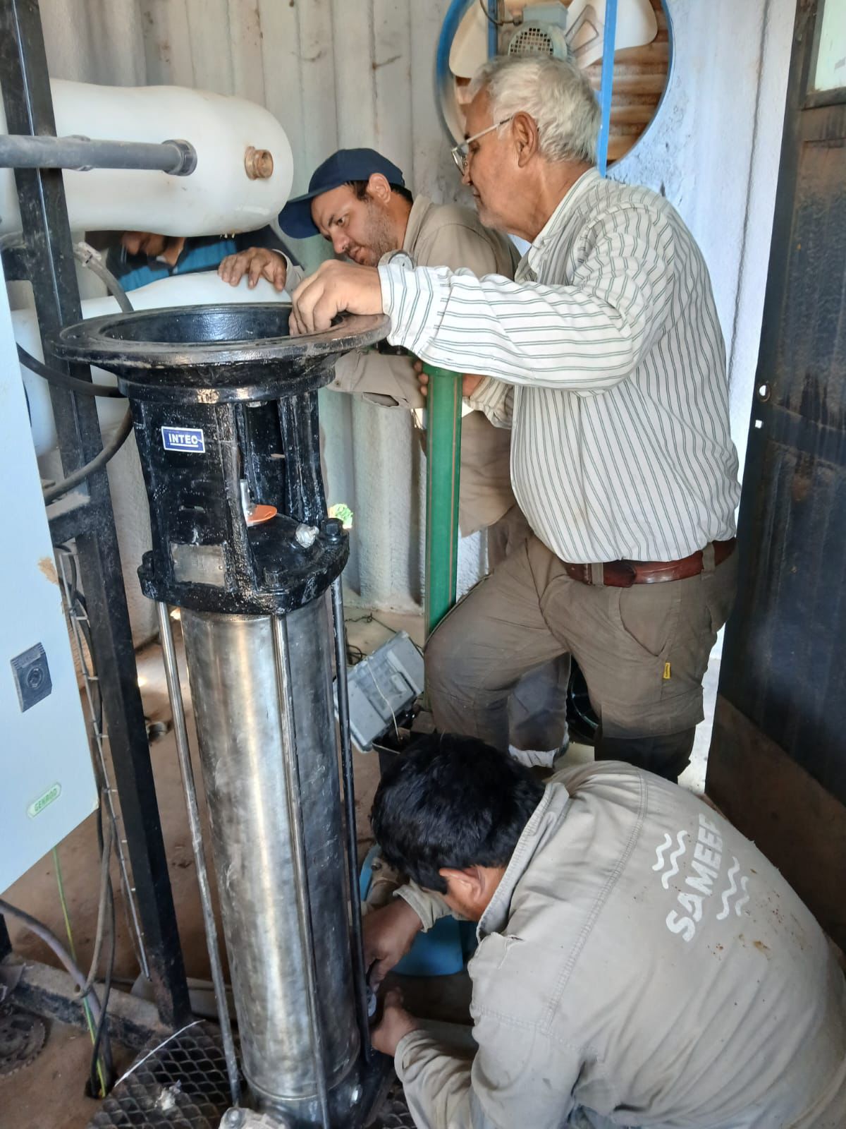 La intervención incluyó la instalación de una bomba reparada por agentes de la Unidad de Ejecución de Ósmosis Inversa y personal de la zona V de la empresa.