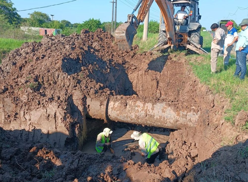 La empresa SAMEEP ejecuta acciones preliminares para restablecer el servicio de agua potable, luego de detectarse la rotura del Acueducto Norte en un caño de PVC de 500 milímetros de diámetro, ubicado a la vera del río Negro, debajo del ex dique.